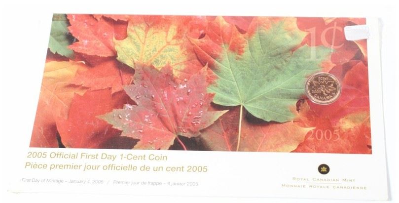 RCM Issue; 2005 1-Cent First Day Cover. Comes with all original Mint packaging, but the folder is bent.