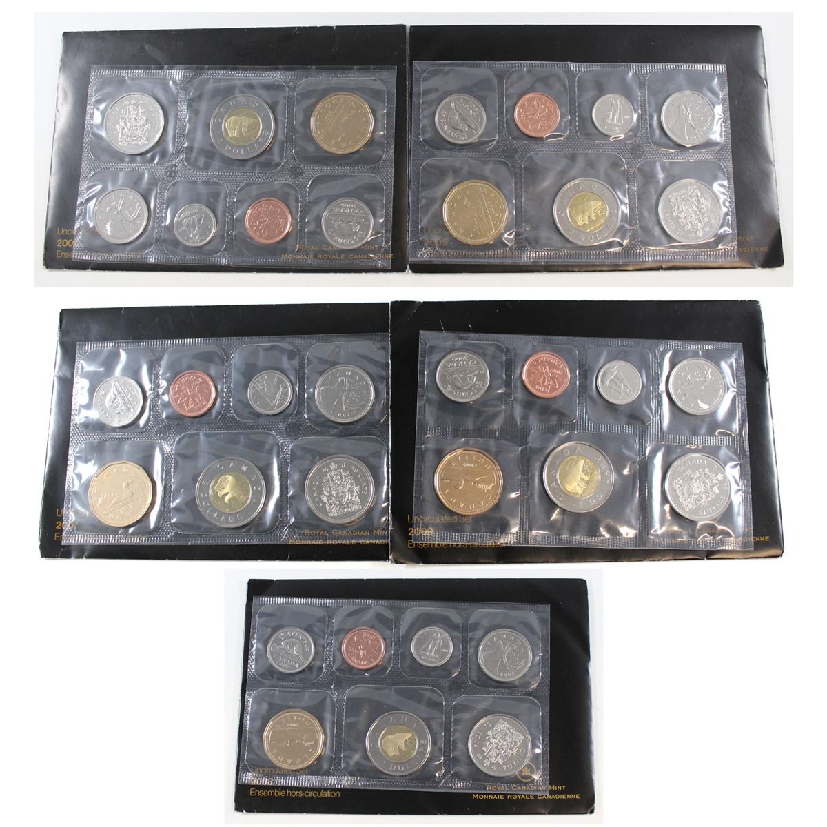 RCM Issue: 2005-2009 Canada Regular Uncirculated Sets. You will receive one of each date Issued from 2005 to 2009. 5pcs