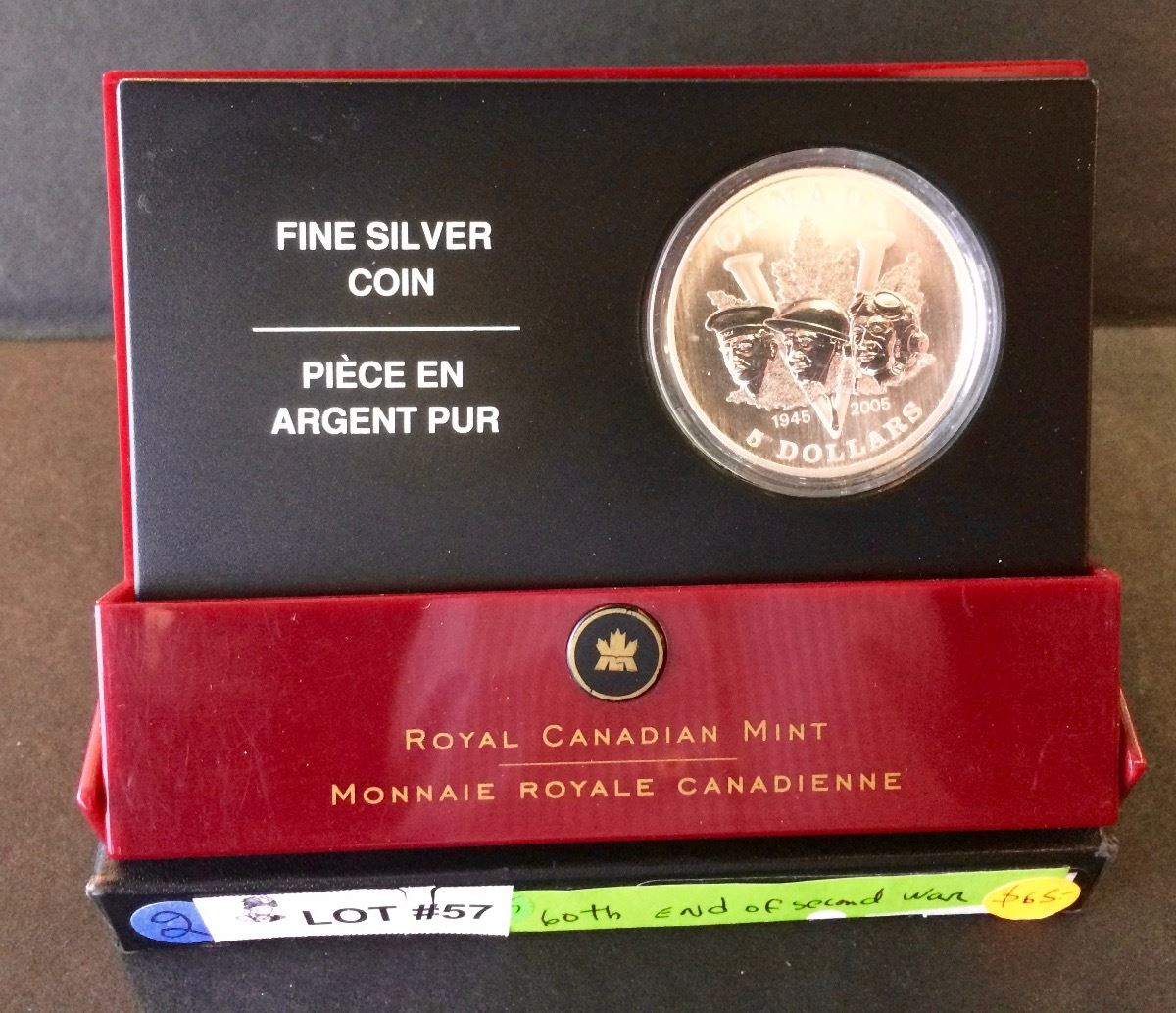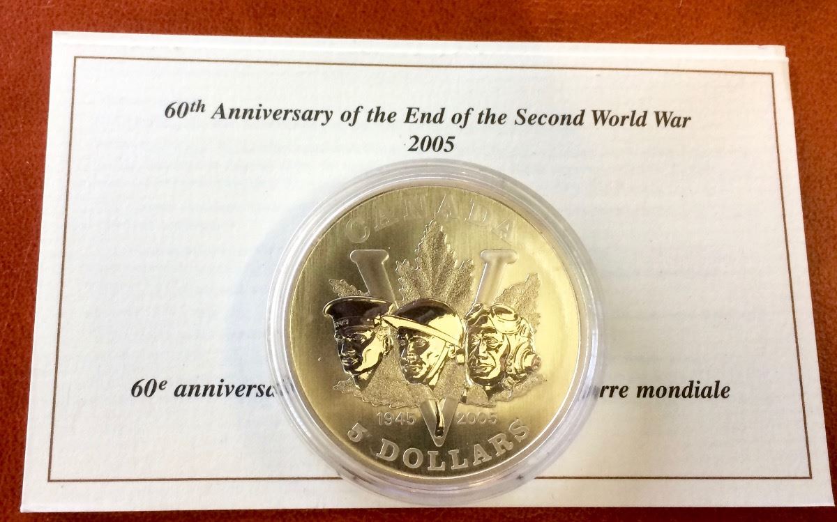 RCM Issue: 2005 5$ Fine Silver 1 OZ 60 th Anniversary of the End of the Second World War , No Tax C.O.A & Box