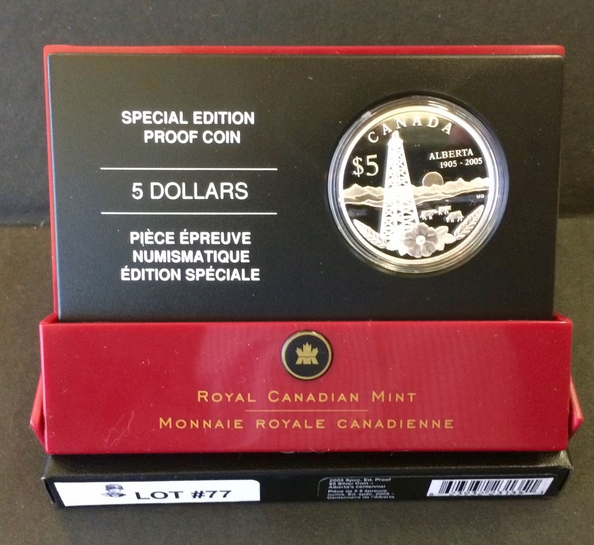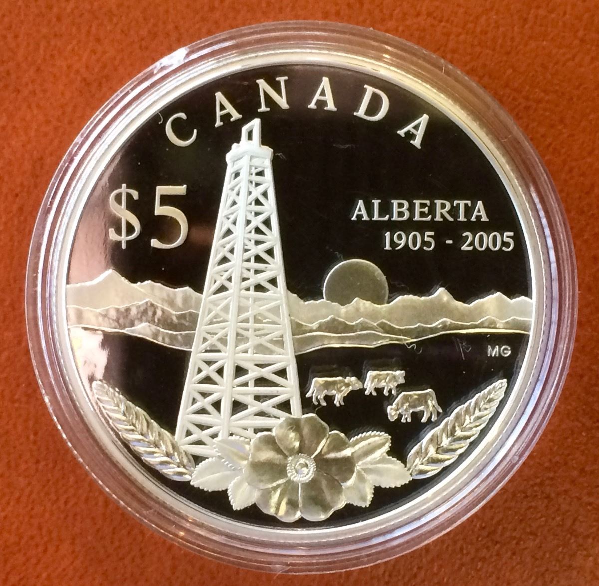RCM Issue: 2005 5$ Fine Silver Special Edition Alberta Centenial, No Tax C.O.A & Box