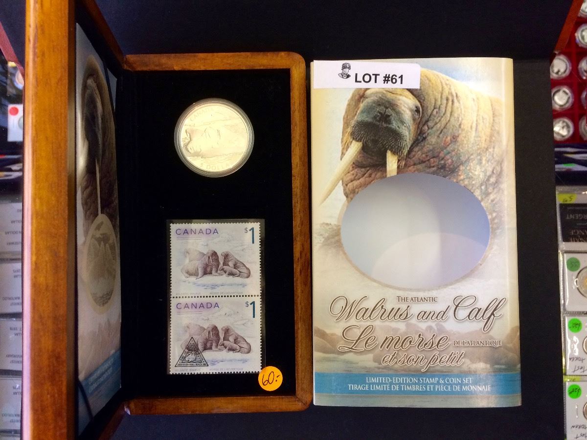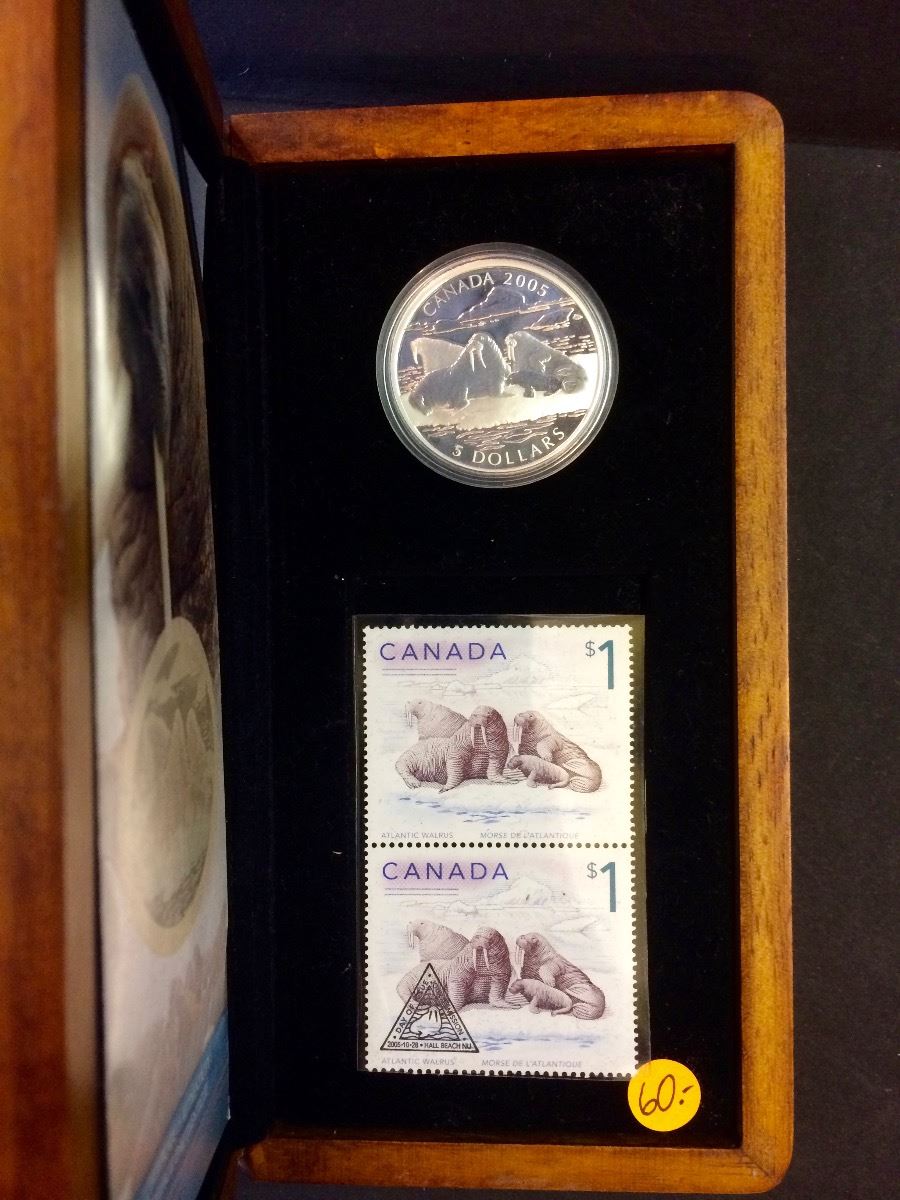 RCM Issue: 2005 5$ Sterling Silver The Walrus and Calf, 1$ Stamp & C.O.A & Box