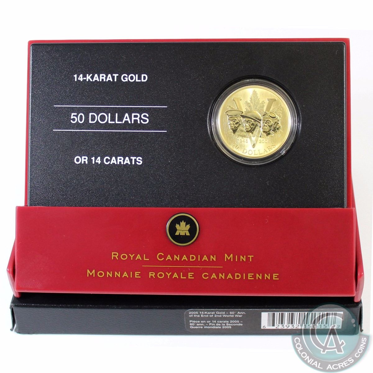RCM Issue: 2005 Canada $50 14K Gold 60th Anniversary of the End of WWII Coin.