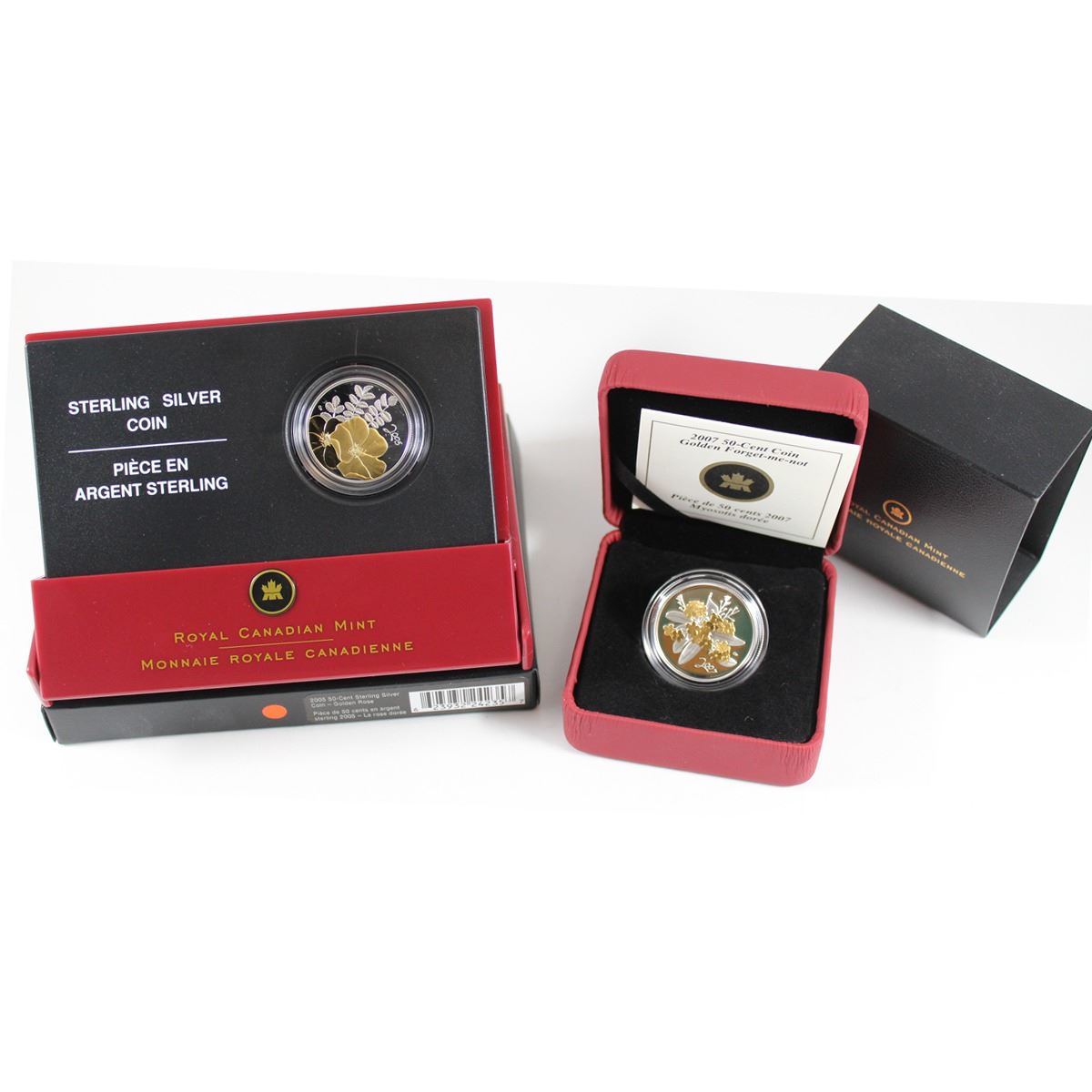 RCM Issue: 2005 Canada 50-cent Golden Rose & 2007 50-cent Golden Forget-Me-Not. 2pcs.