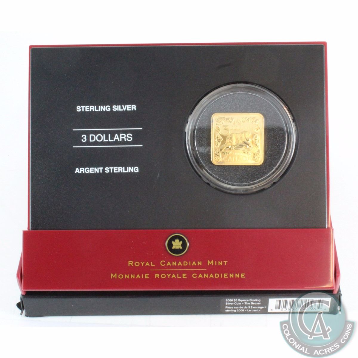 RCM Issue: 2006 Canada $3 Square Sterling Silver Beaver Coin. (Coin is lightly toned)
