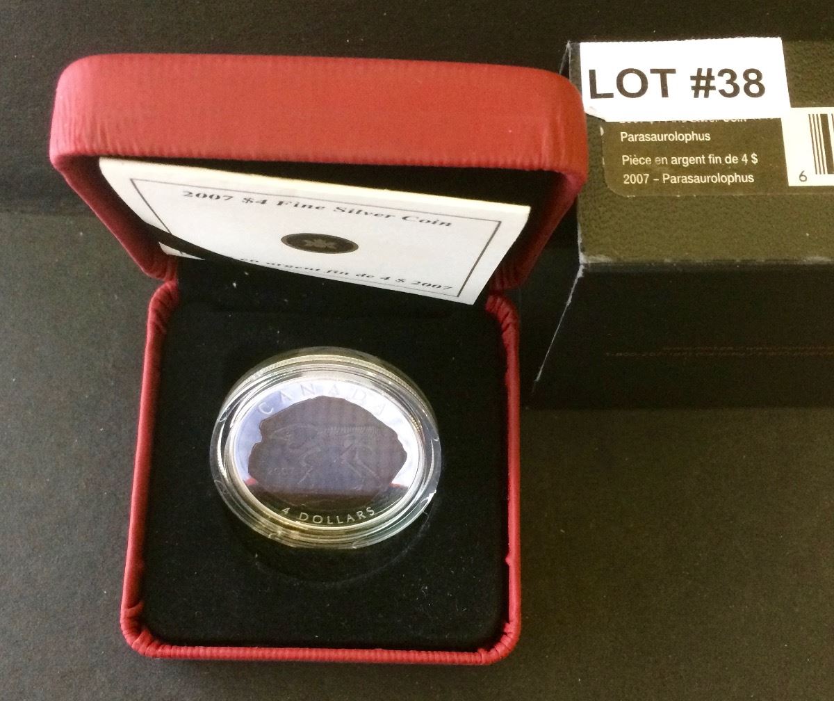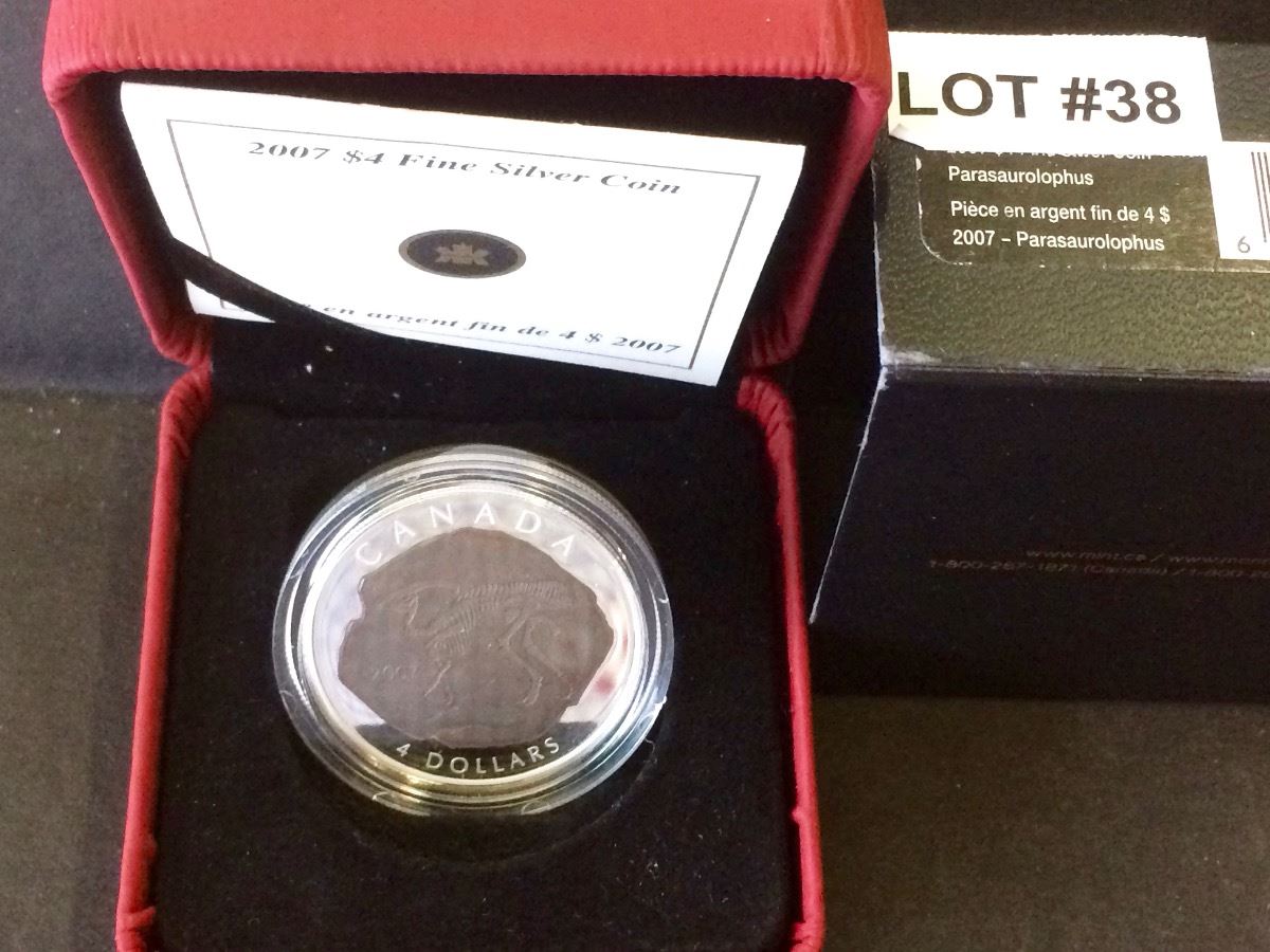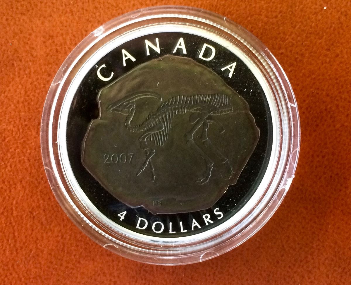 RCM Issue: 2007 4$ Fine Silver coin parasaurolophus, No Tax C.O.A & Box