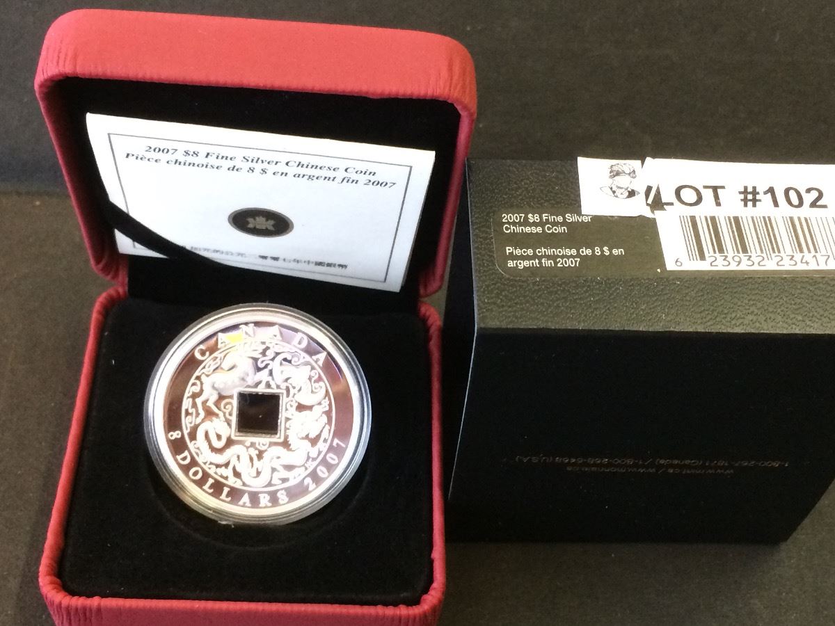 RCM Issue: 2007 8$ Fine Silver Chinese Coin, with C.O.A. & Box, No Tax