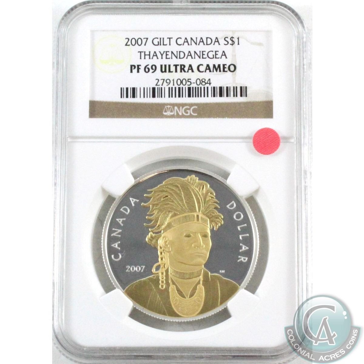 RCM Issue: 2007 Canada $1 Joseph Brant (Thayendanegea) Gold Plated Proof Silver Dollar NGC Certified PF-69 Ultra Cameo (TAX Exempt)