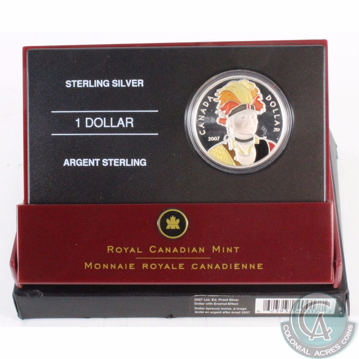 RCM Issue: 2007 Canada Joseph Brant Enamel (Thayendanegea) Proof Silver Dollar with enamel-effect. (Light spot on coin)