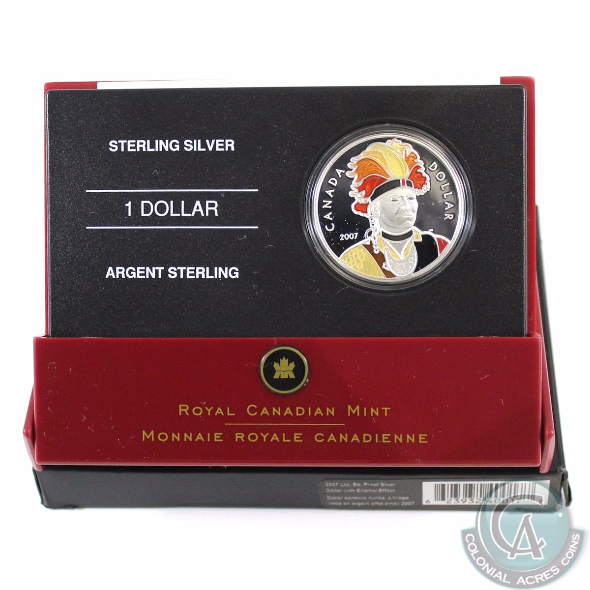 RCM Issue: 2007 Canada Joseph Brant Enamel (Thayendanegea) Proof Sterling Silver Dollar with enamel-effect (Light spot on Coin)