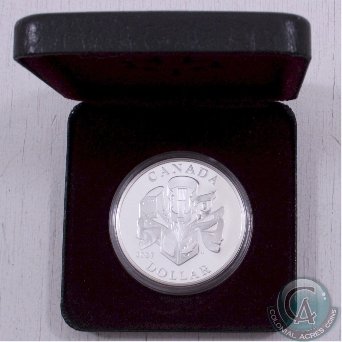 RCM Issue: 2007 Special Edition Celebration of the Arts Proof Silver Dollar. Comes encapsulated in a black display case (coin lightly scratched). (TAX Exempt)