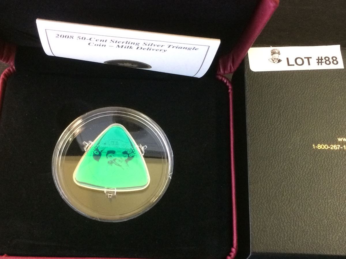 RCM Issue: 2008 50-Cent Sterling Silver Triangle Coin-Milk Delivery, with C.O.A. & Box