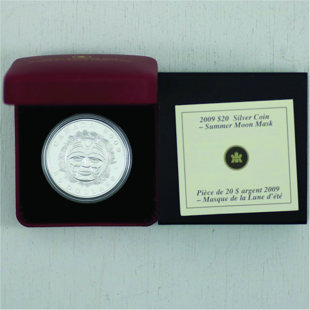 RCM Issue 2009 Canada $20 Silver Summer Moon Mask Coin with all original mint packaging (TAX Exempt)