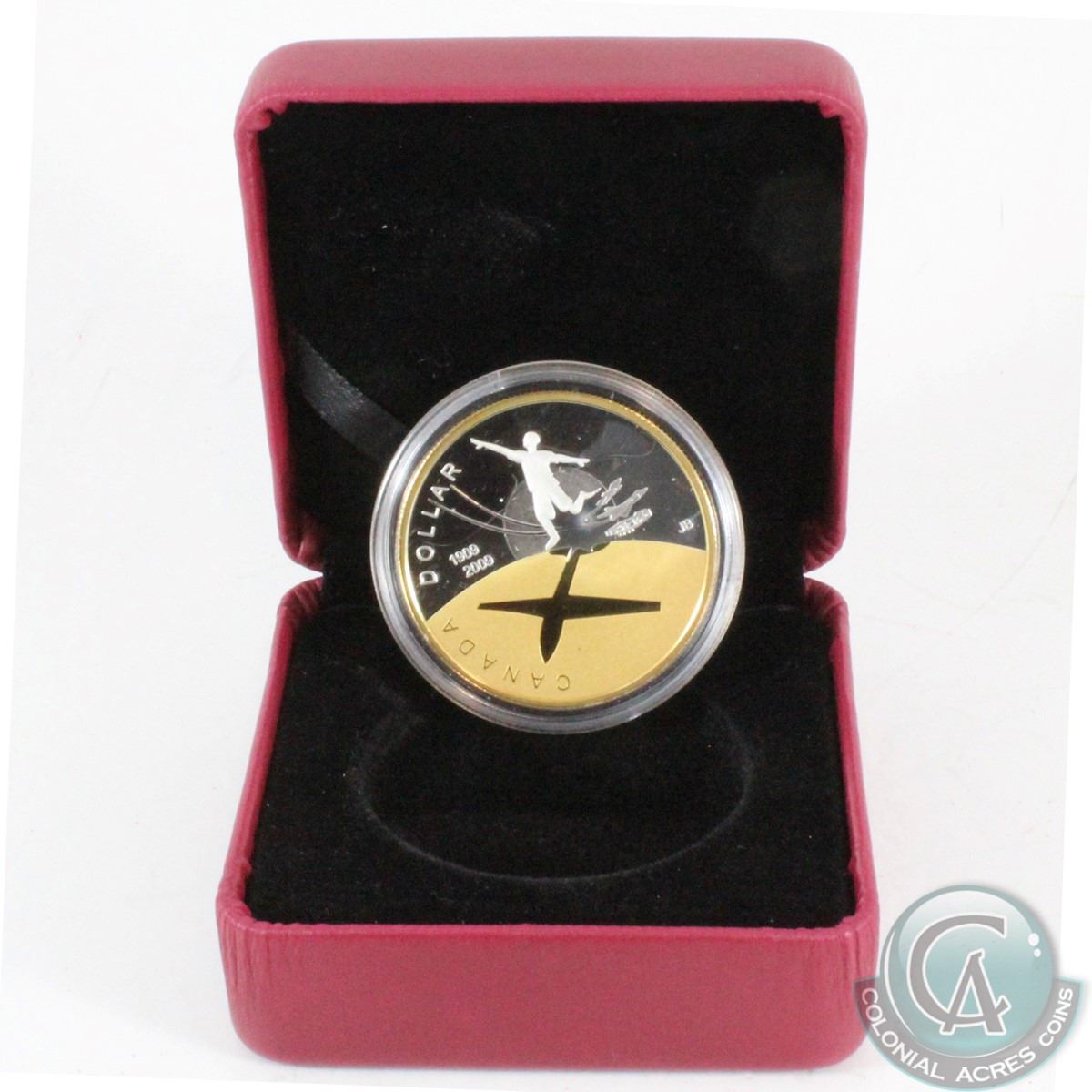 RCM Issue: 2009 Canada Gold Plated Silver Dollar Commemorating 100th Anniversary of Flight in Canada (TAX Exempt). Coin comes encapsulated with a red clamshell display box.