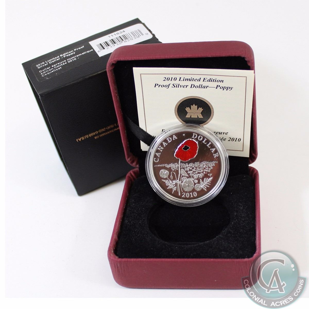 RCM Issue: 2010 Canada Limited Edition Poppy Proof Silver Dollar (outer display and sleeve is tattered)