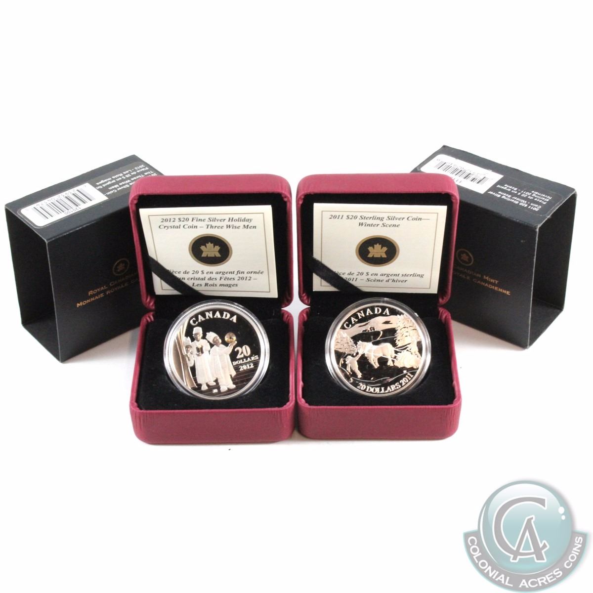 RCM Issue: 2011 Canada $20 Winter Scene & 2012 $20 The Three Wise Men Fine Silver Coins. 2pcs (TAX Exempt)