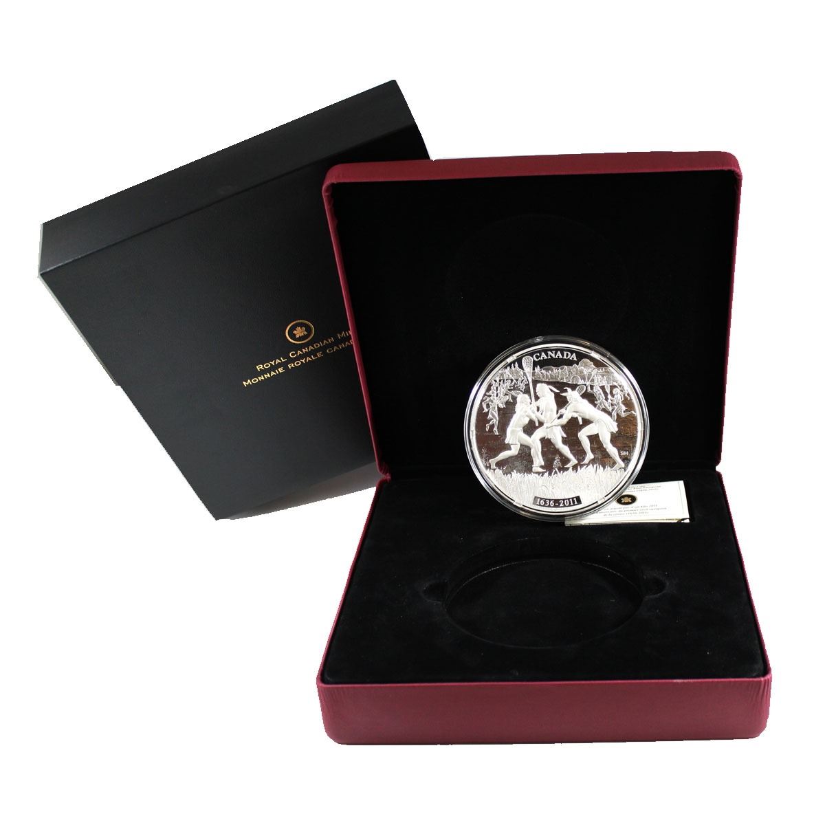 RCM Issue: 2011 Canada $250 375th Anniversary of Lacrosse Fine Silver Kilo (TAX Exempt). Please note capsule contains very faint scratches and rim blemishes due to production.