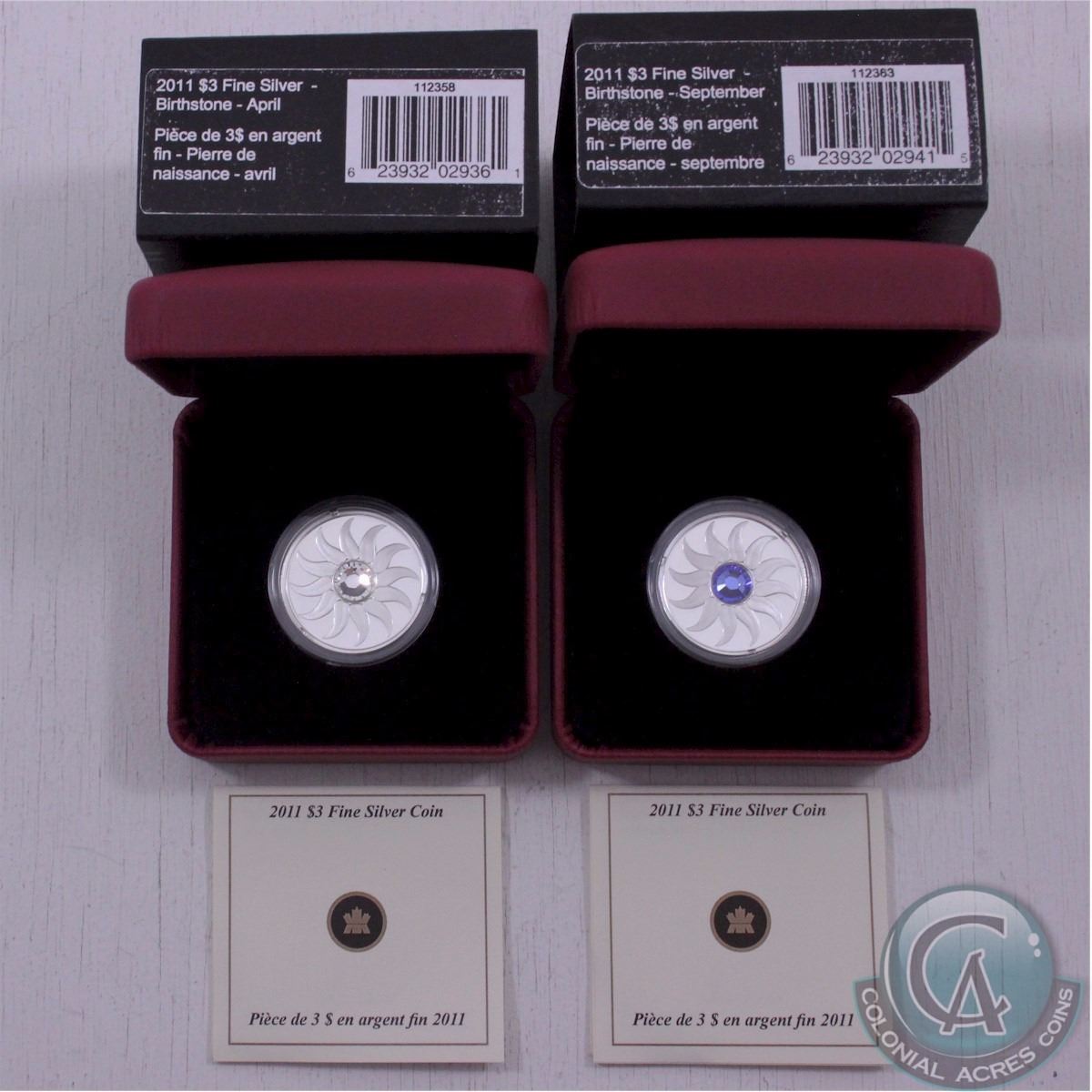 RCM Issue: 2011 Canada $3 April & September Birthstone Fine Silver Coins (TAX Exempt). 2pcs