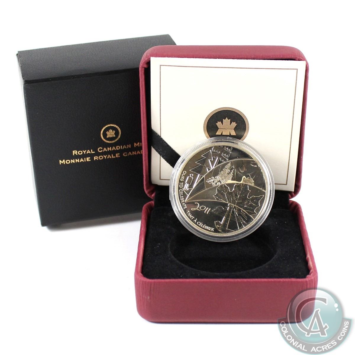 RCM Issue: 2011 Special Issue 1oz Fine Silver Employee Award 'Ours to Celebrate' (TAX Exempt). This medal was given to Mint Employees as an award for the Mints accomplishments in 2011. Please note the capsule is broken and coin is toned.