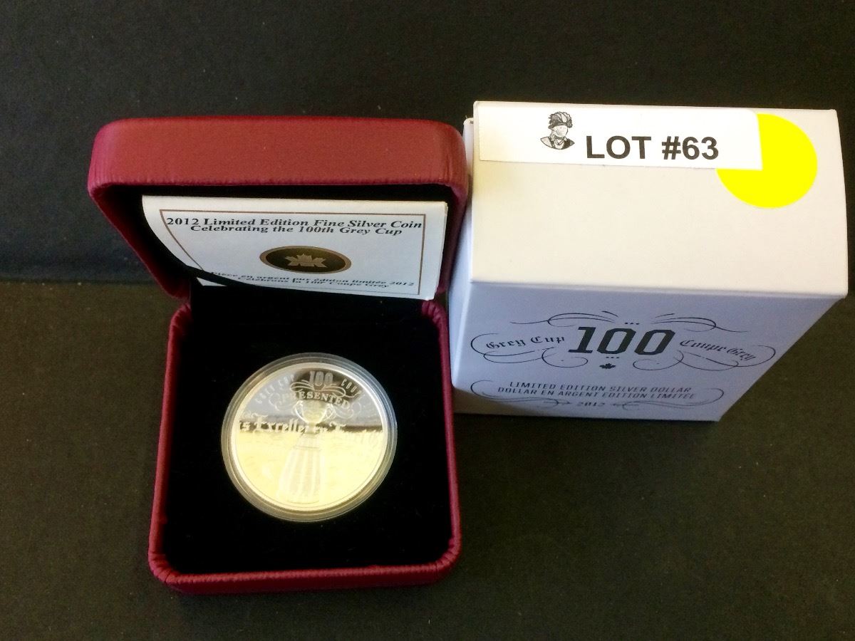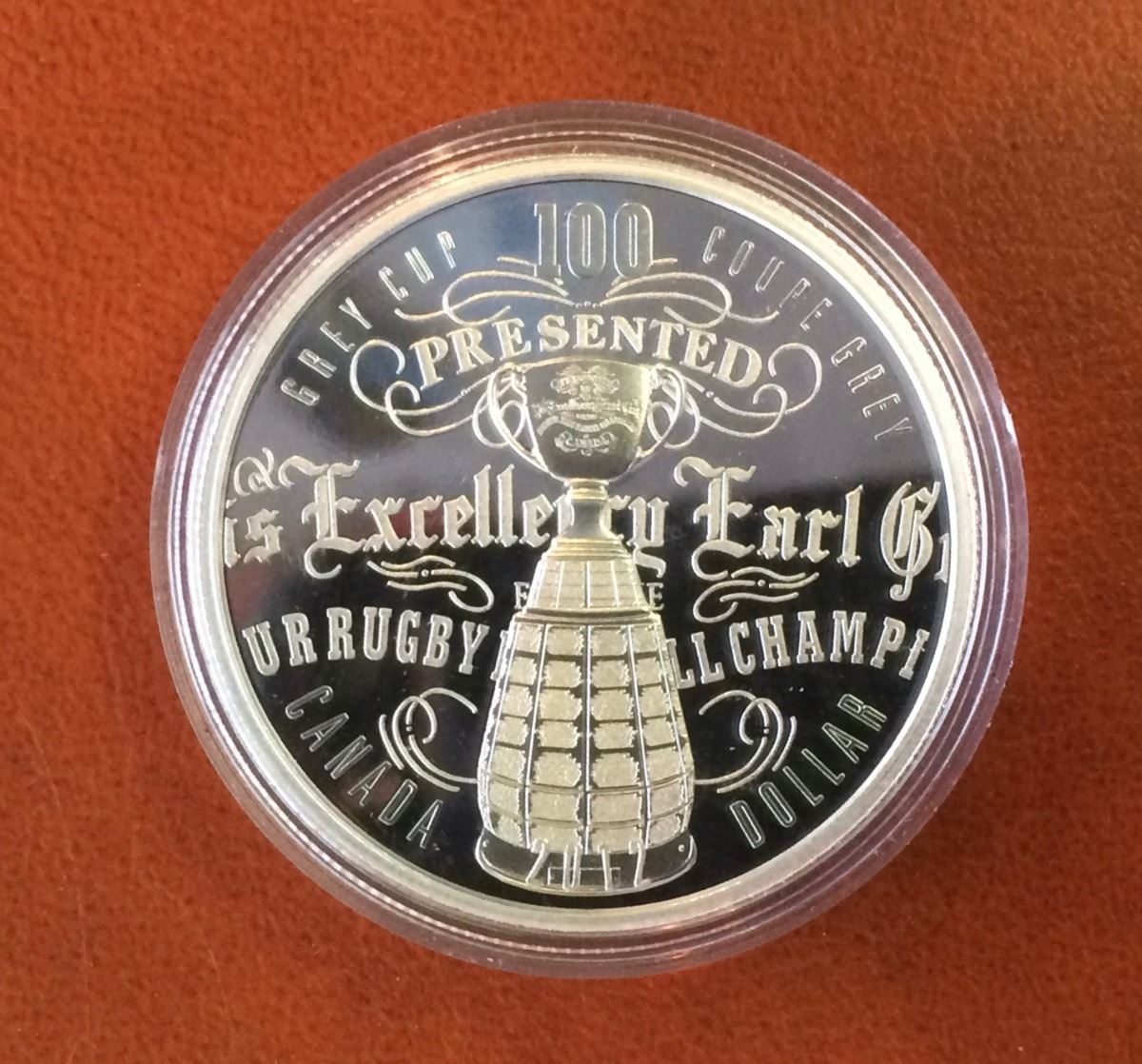 RCM Issue: 2012 1$ Fine Silver 100 th Anniversary Grey Cup, No Tax C.O.A & Box