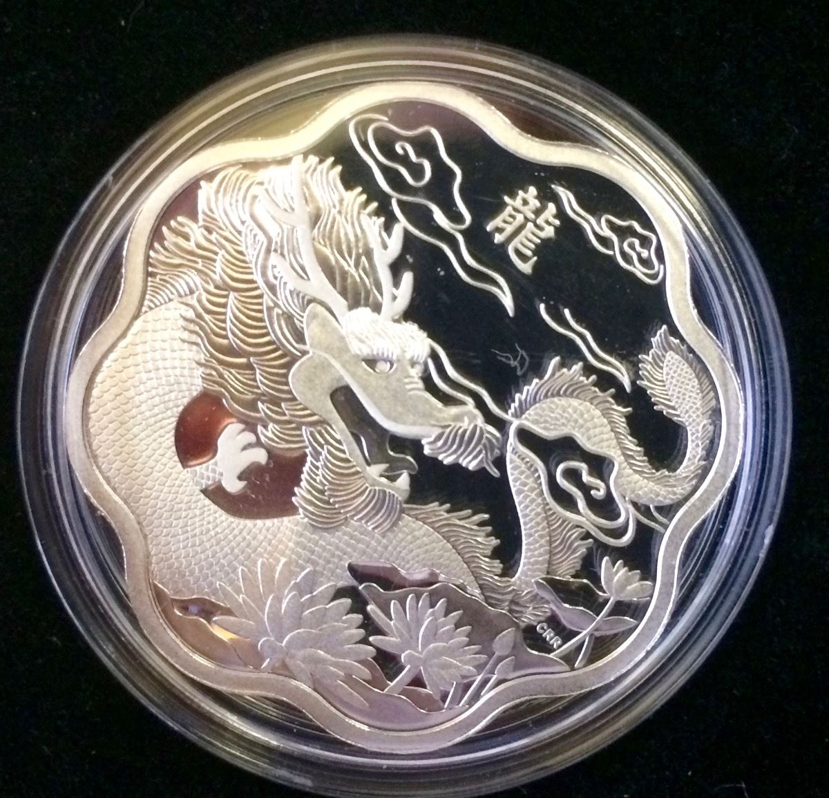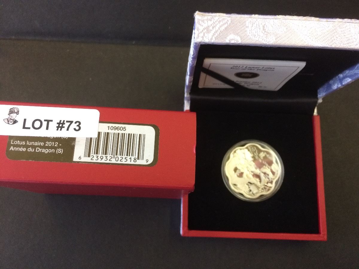 RCM Issue: 2012 15$ Proof Fine Scallop Shape Silver coin, Lunar Lotus Year of the Dragon, C.O.A & Box