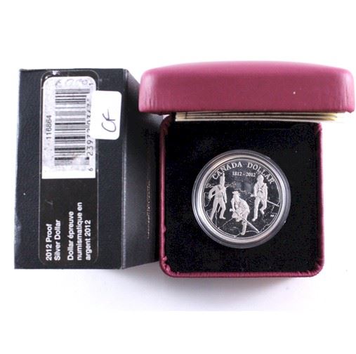 RCM Issue; 2012 Canada Proof Silver dollar War of 1812 commemortive. Please note that the outer cardboard sleeve has some writing on it (Tax Exempt)