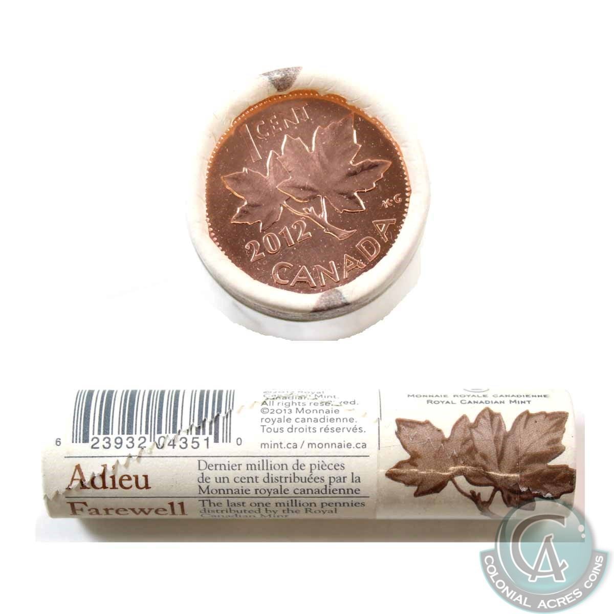 RCM Issue: 2012 Canada Special Wrap Roll - 1-cent Coins - The Last Million Circulation Pennies Distributed by the RCM (Farewell to the Penny). #4707/20,000
