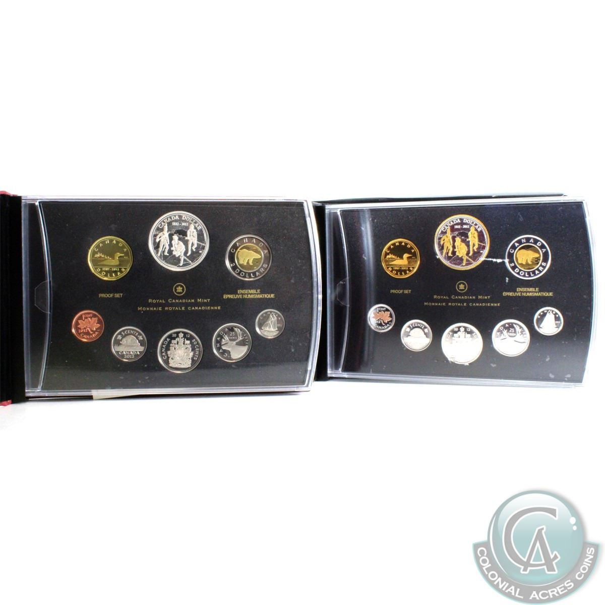RCM Issue: 2012 Regular & 2012 Deluxe Fine Silver Proof Double Dollar sets. Both sets come with all the Original mint packaging (the outer box is tattered and the Certificates are lightly scuffed) (2 sets)