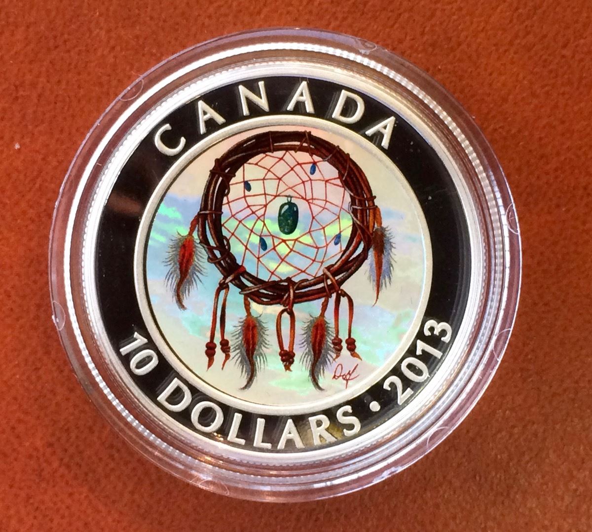 RCM Issue: 2013 10$ Fine Silver Dreamcatcher Hologram, No Tax C.O.A & Box