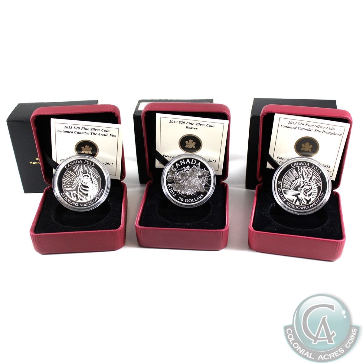 RCM Issue: 2013 $20 Beaver & 2013 $20 Untamed Arctic Fox & Pronghorn. 3pcs.
