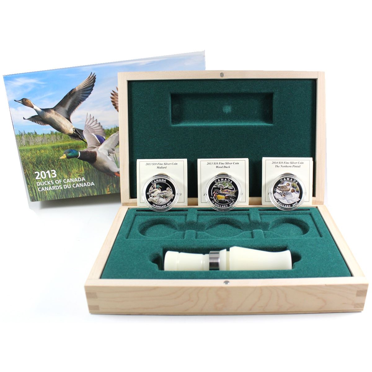 RCM Issue: 2013-2014 $10 Ducks of Canada 3-coin Deluxe Box Set & Duck Caller (capsules may have faint scratches). TAX Exempt