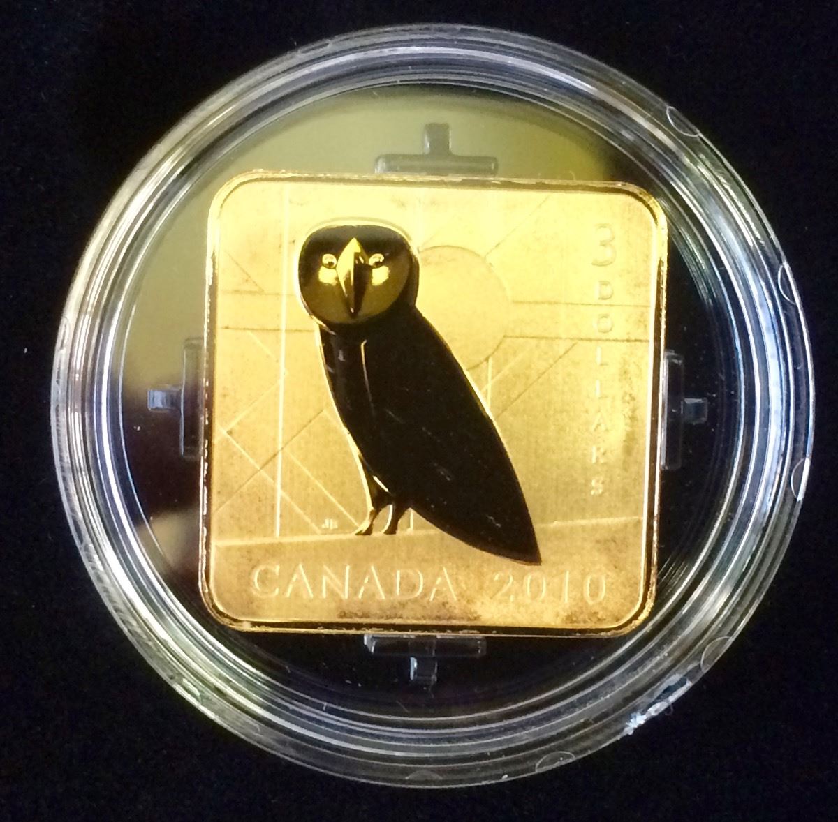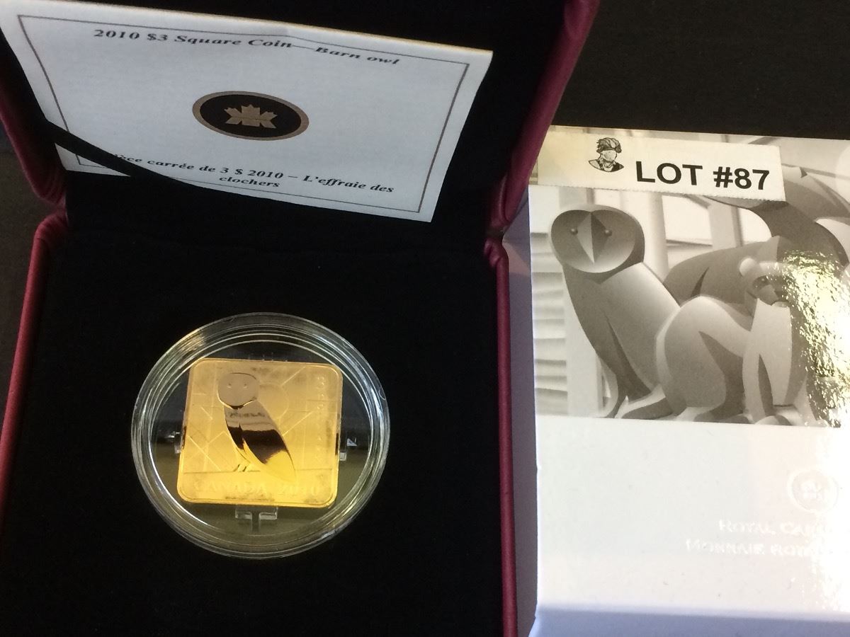 RCM Issue: 2013 3$ Square Sterling Silver Coin-Barn Owl, C.O.A. & Box