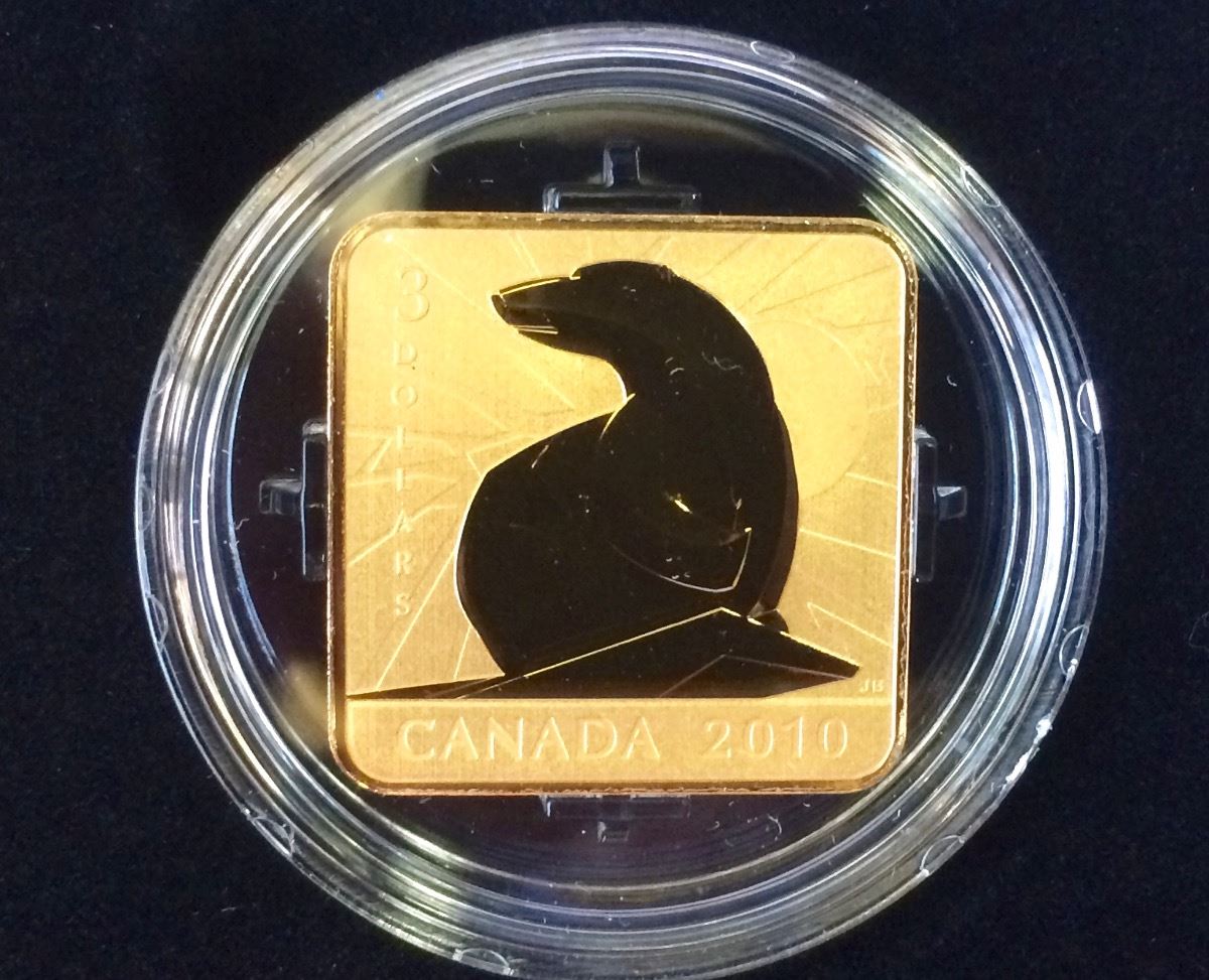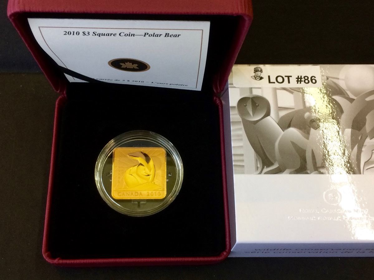 RCM Issue: 2013 3$ Square Sterling Silver Coin-Black-Polar Bear, C.O.A. & Box