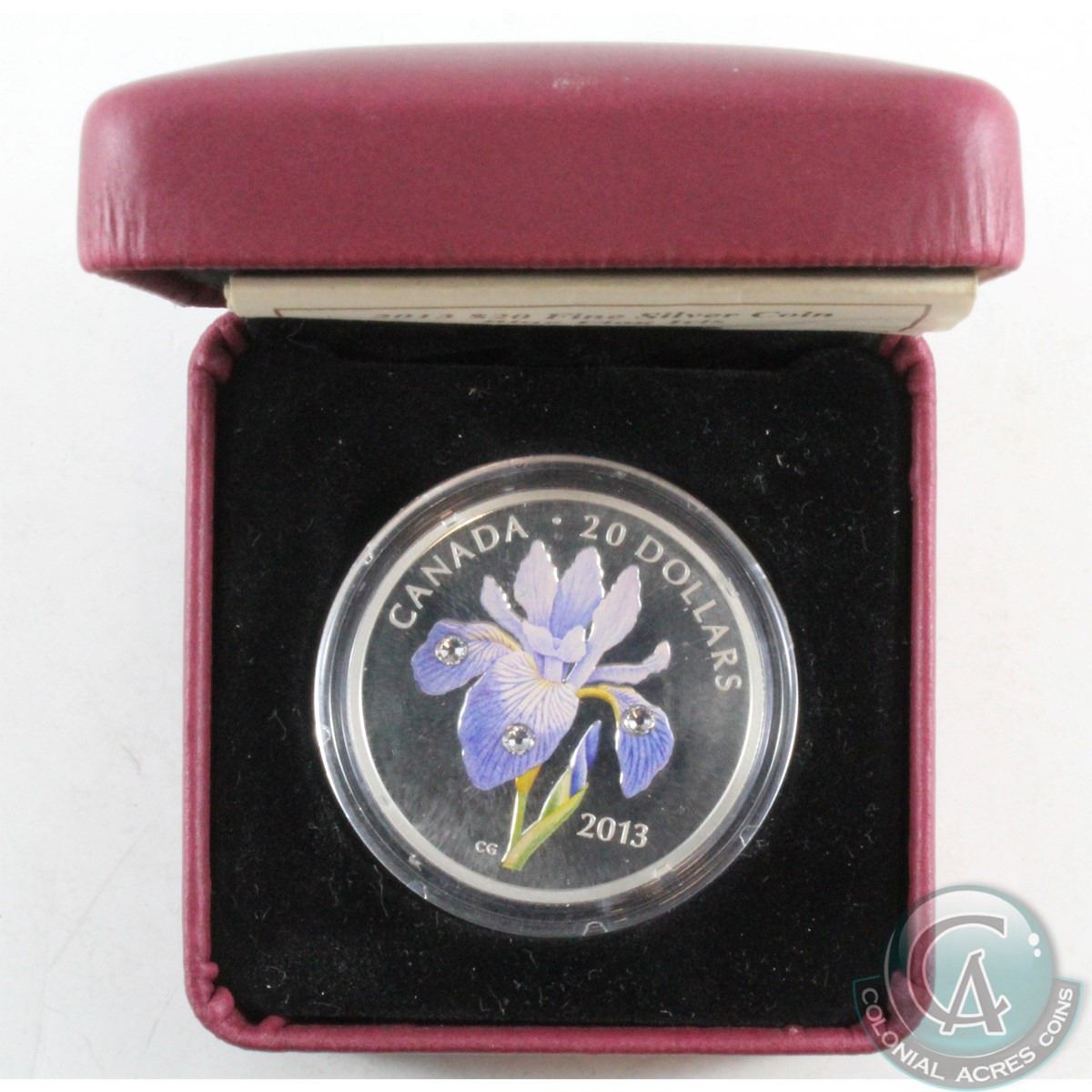 RCM Issue: 2013 Canada $20 Blue Flag Iris Fine Silver Coin (TAX Exempt). Coin comes encapsulated with display box and Certificate.
