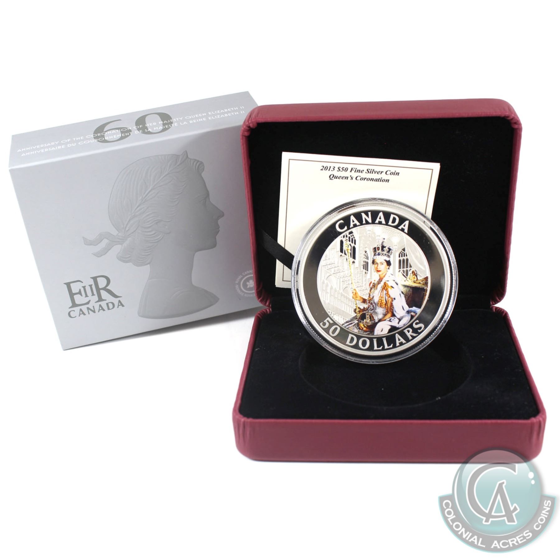 RCM Issue: 2013 Canada $50 Queen's Coronation Coloured 5oz Fine Silver Coin (capsule is lightly scratched) Tax Exempt.