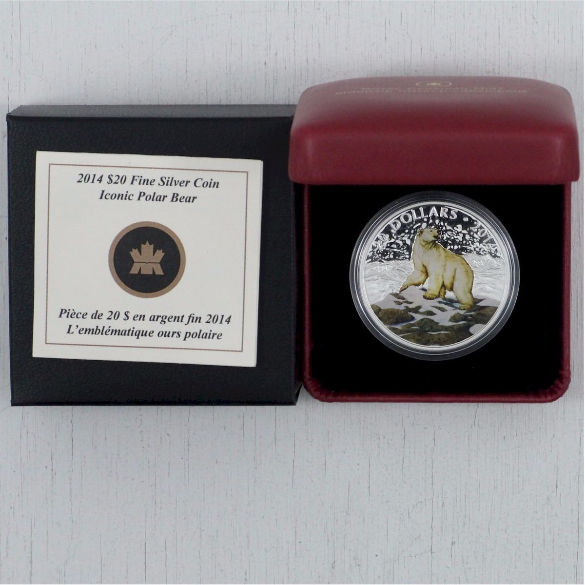 RCM Issue; 2014 $20 Fine Silver Iconic Polar Bear Coin (TAX Exempt). Buyers Premium will be added on all items as per our terms of sale. We accept Paypal, Credit Card, E-Transfer Payments, Cheque or Money Orders (there is an additional 3% fee for using Paypal or Credit Card). All invoices will be emailed immediately following the auction, please contact us if you would like to pay by credit card or receive a new revised lower total for mailing in payment or sending an e-transfer (3% discount). All Items Are Sold "AS IS", no returns