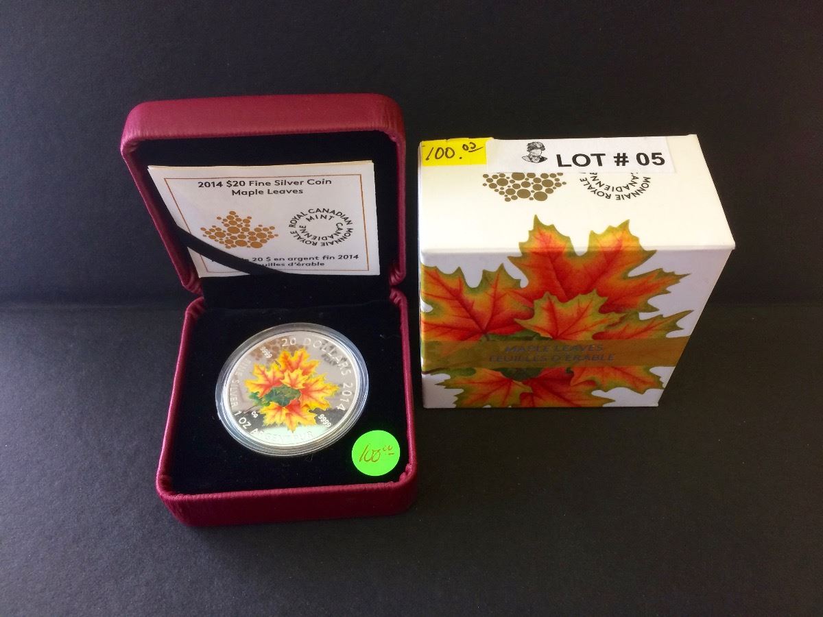 RCM Issue: 2014 20$ Fine Silver Maple Leaves, No Tax C.O.A & Box