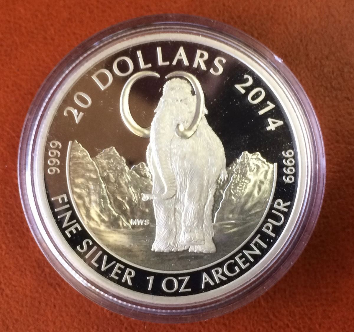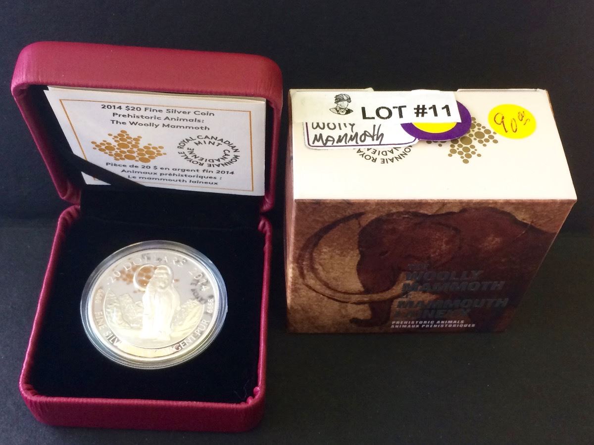 RCM Issue: 2014 20$ Fine Silver Prehistoric Animals: The Wooly Mammoth No Tax C.O.A & Box