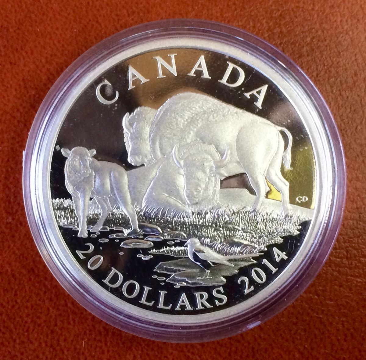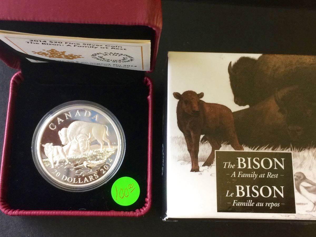 RCM Issue: 2014 20$ Fine Silver The Bison: A family at Rest, No Tax C.O.A & Box