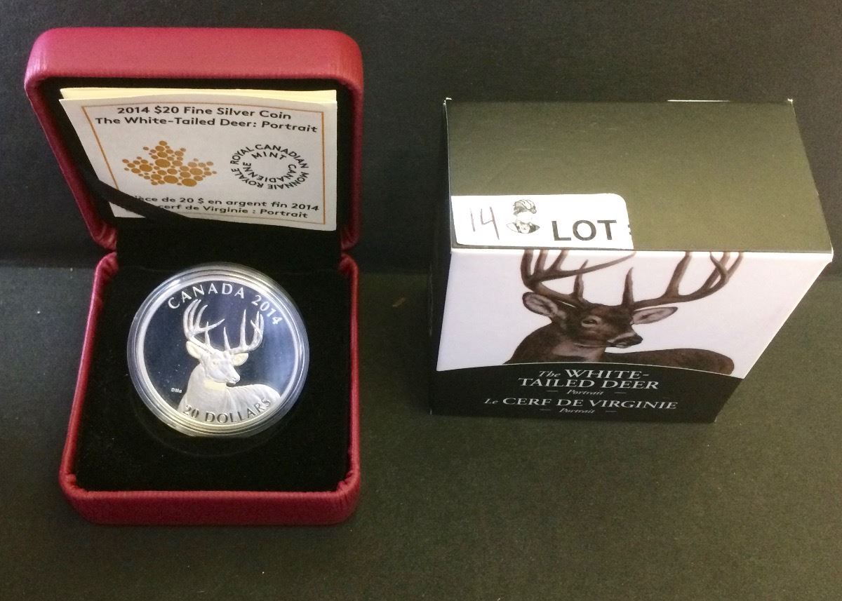 RCM Issue: 2014 20$ Fine Silver The White-Tailed Deer: Portrait, No Tax C.O.A & Box