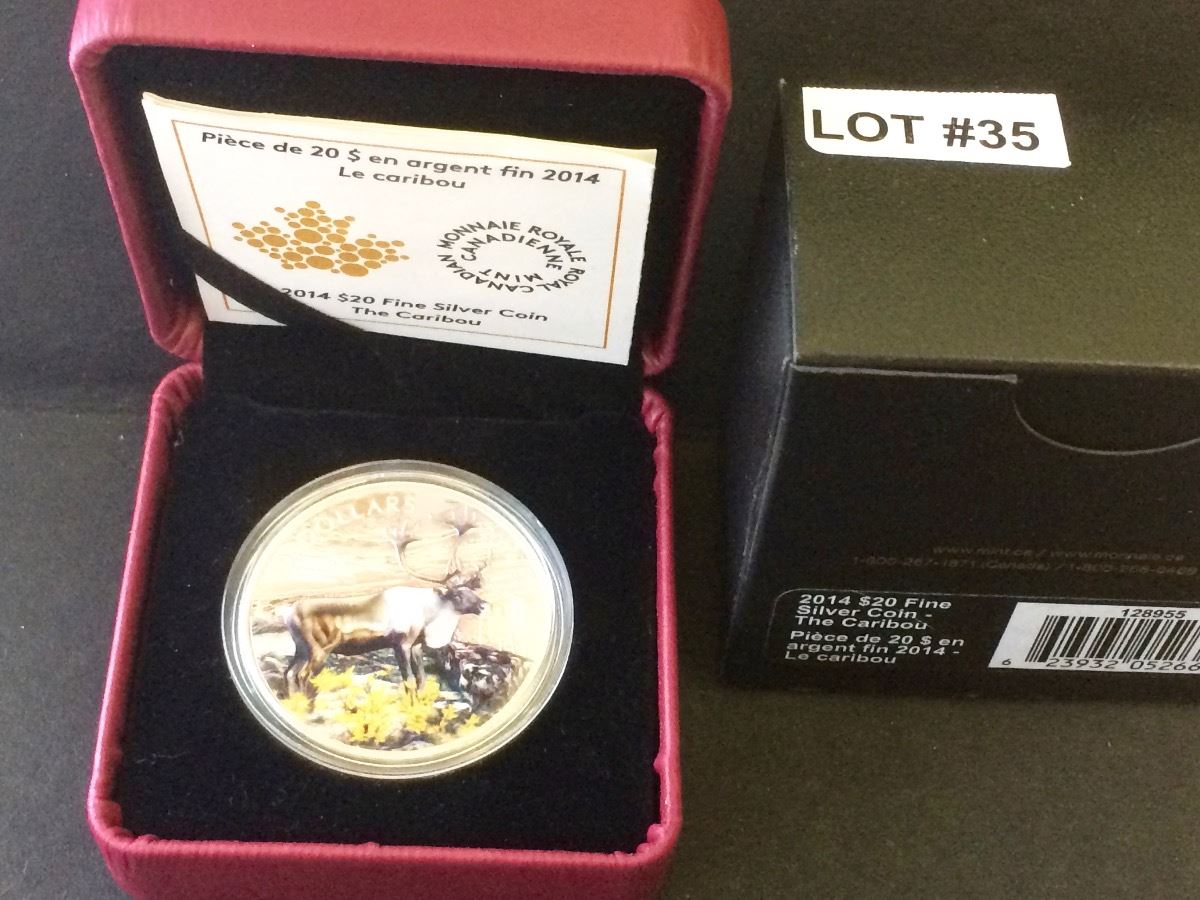 RCM Issue: 2014 20$ Fine Silver TheCaribou, No Tax C.O.A & Box