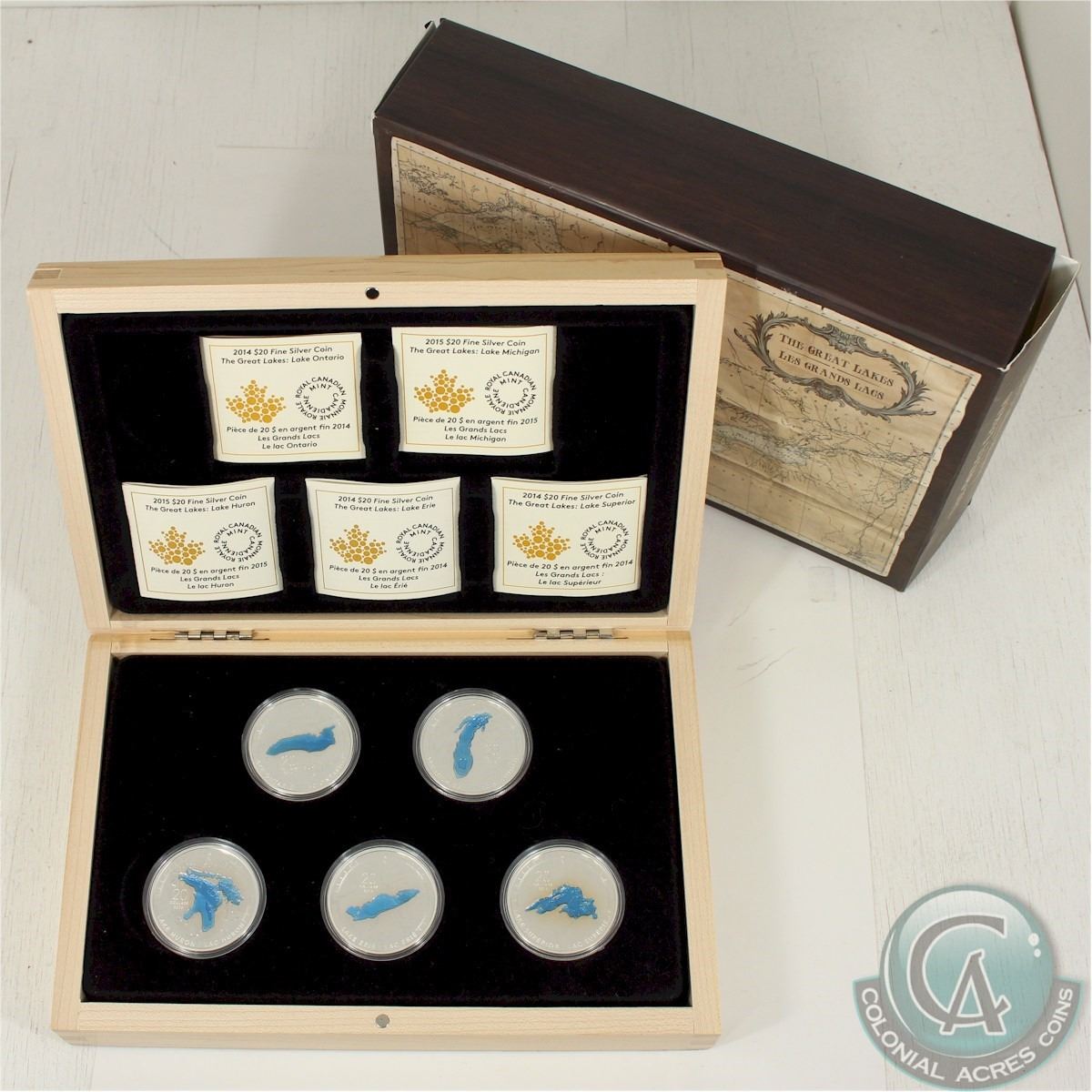 RCM Issue; 2014-2015 Complete $20 Great Lakes 5-coin Set in Deluxe Case (Tax Exempt).