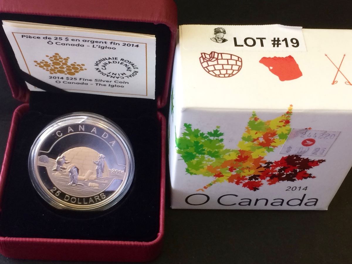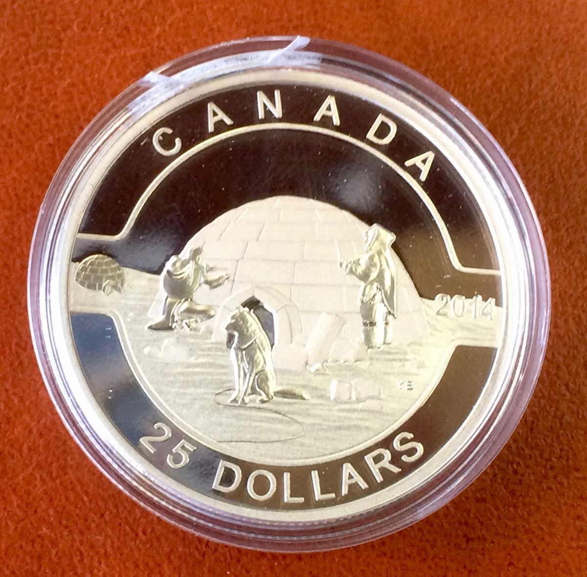 RCM Issue: 2014 25$ Fine Silver O Canada The Igloo, No Tax C.O.A & Box