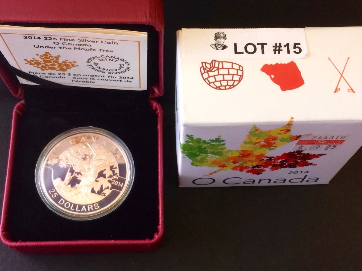 RCM Issue: 2014 25$ Fine Silver O Canada Under the Maple Tree, No Tax C.O.A & Box