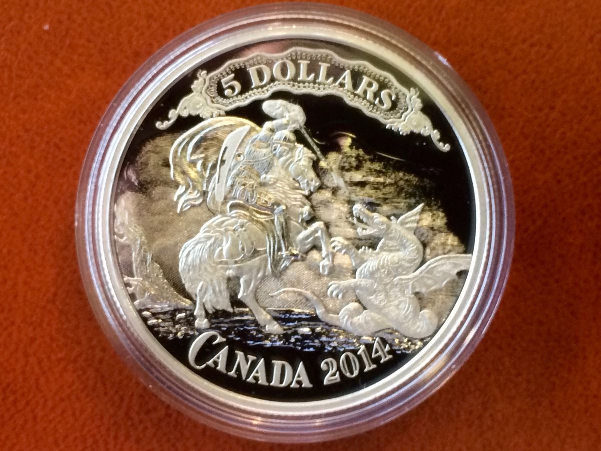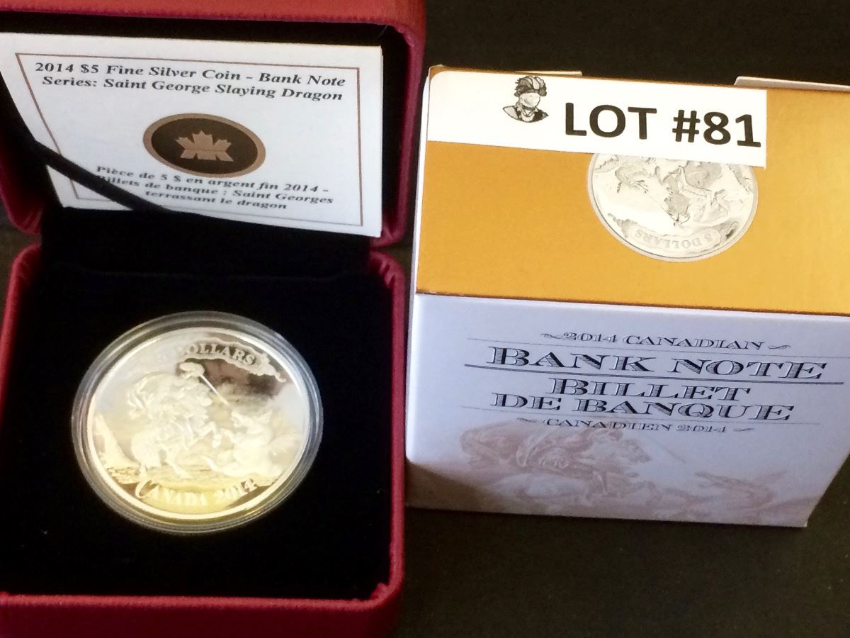 RCM Issue: 2014 5$ Fine Silver Bank note Series; Saint George Slaying Dragon, No Tax C.O.A & Box