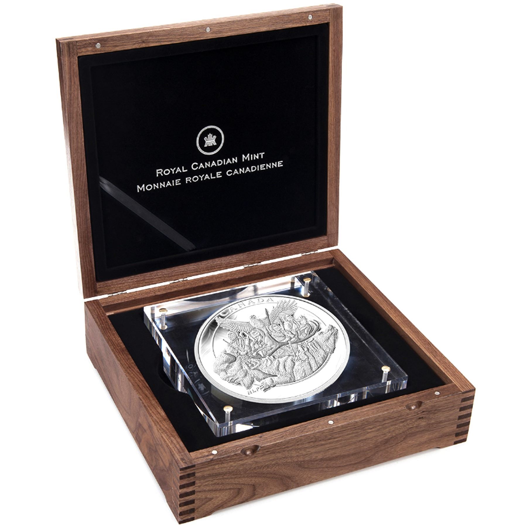 RCM Issue: 2014 $500 National Aboriginal Veterans Monument 5 Kilo Fine Silver Coin in Deluxe Display Box with COA #037/150. TAX Exempt. A Very Impressive coin and showcases the Mints amazing abilities and craftsmanship.