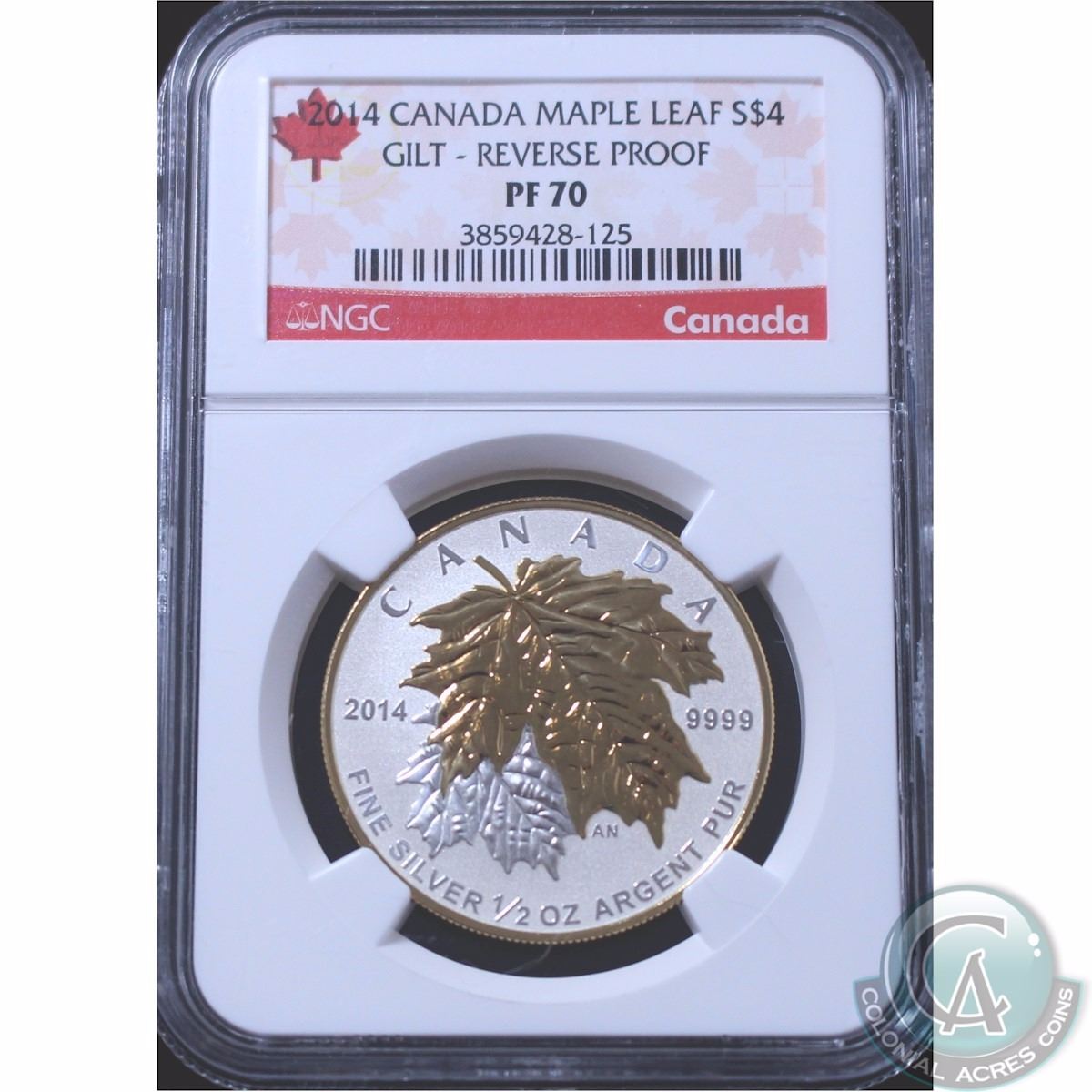 RCM Issue: 2014 Canada 1/2 oz. Maple Leaf $4 Gilt-Reverse Proof NGC Certified PF-70 (Tax Exempt)