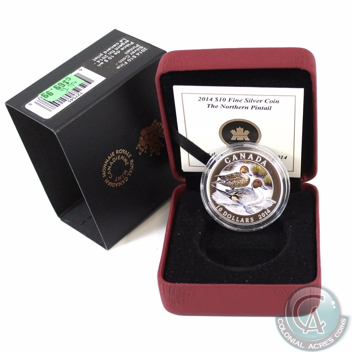 RCM Issue: 2014 Canada $10 The Northern Pintail Duck Fine Silver Coin (TAX Exempt). Coin comes with all Original Packaging issued by the Royal Canadian Mint.