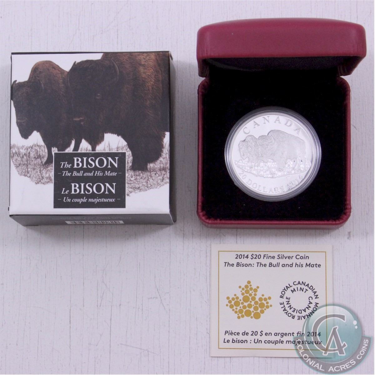 RCM Issue: 2014 Canada $20 1oz The Bison: The Bull and his Mate .9999 Fine Silver Coin (TAX Exempt). This coin is the Second coin in The Bison Series.