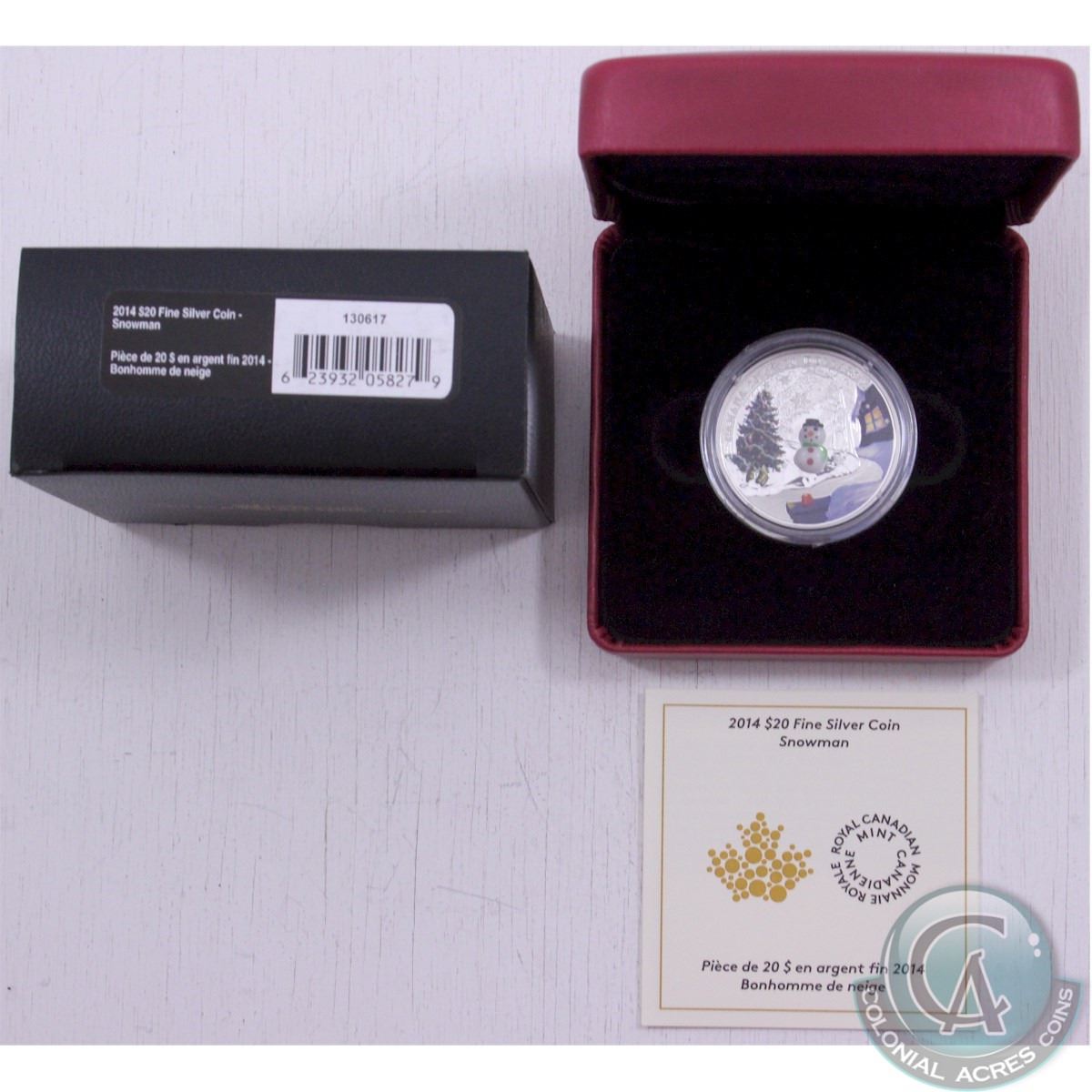 RCM Issue: 2014 Canada $20 Fine Silver Coin with Glass Snowman (TAX Exempt). Coin comes with all original mint packaging.