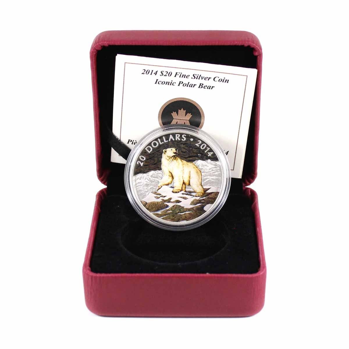 RCM Issue: 2014 Canada $20 Iconic Polar Bear Fine Silver Coin (missing outer cardboard sleeve). TAX Exempt